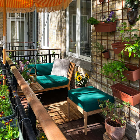 The Sienna Lounge Sofa is made of teak wood and has rounded wooden details that add a soft touch to the furniture.