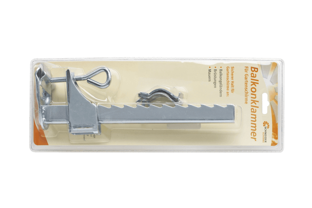 Parasol holder in galvanized steel to mount on your balcony railing. The parasol holder can span a maximum width of 19 cm.