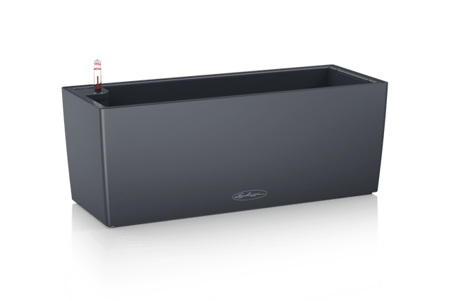 Balconera balcony flowerbox with self-watering system in polypropylen material. The water container can be filled with water in the top corner of the balcony box, where you can easily add water and keep an eye on when new water needs to be added. The balcony box has a built-in box to plant in, which can be taken up easily, so you don't have to take the balcony box off the railing to rearrange your plants. Bracket and backpiece for Balconera balcony flower box is not included.