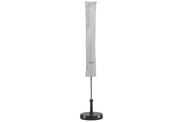 Light gray parasol cover made from a water-repellent coated fabric. The cover is light-proof which prevents the parasol from color fading. By protecting your parasol with a cover, you extend the life of your parasol.