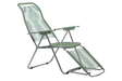 Spaghetti deckchair is a classic retro deck chair with a variety of sitting options. The footstool can be easily and elegantly folded under the chair, so it almost disappears. The elegant deckchair works just as well as a wonderful reading chair in the garden, terrace, balcony or even at the beach. The backrest is lowered by lifting the armrests. The deck chair can be folded up in a snap, so you can take it with you to the beach or the summerhouse. The frame is aluminum.