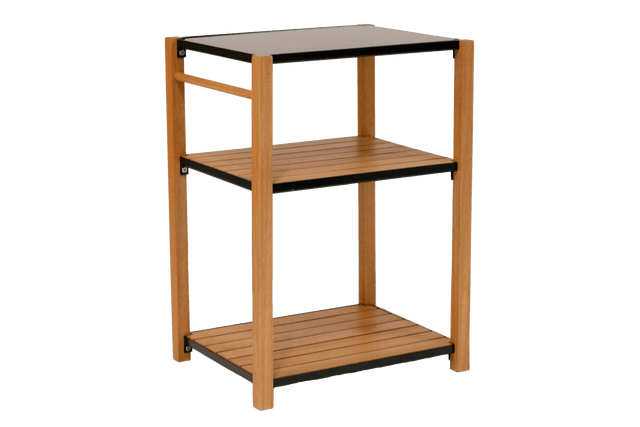 Dora barbecue table with black granite top is an ideal base for a small barbecue. Here you get a work station with a suitable height, which will provide you with the perfect working conditions for a nice barbecue evening with friends or family on the balcony. The black granite top is not only pretty but also a great option as a base for the warm barbecue grill because it can withstand high temperatures and is easy to clean. The rest of the Dora barbecue table is made from oiled eucalyptus tree. The golden surface of the material creates a good contrast to the granite top. Combine the Dora grill table with the Dora low grill table for extra table space.