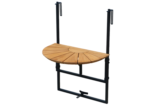 The Galina hanging balcony table, inspired by the petals of the daisy flower, is made from solid teak wood, offering a natural and elegant finish. The wood is untreated, highlighting its natural beauty and unique character. You can choose whether to let it age into a beautiful silvery grey or treat it with oil to maintain its warm hue. Read more about teak wood and maintenance here.