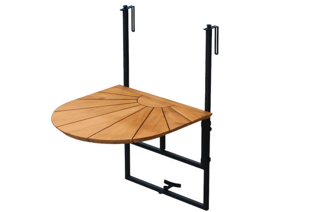 The Galina hanging balcony table, inspired by the petals of the daisy flower, is made from solid teak wood, offering a natural and elegant finish. The wood is untreated, highlighting its natural beauty and unique character. You can choose whether to let it age into a beautiful silvery grey or treat it with oil to maintain its warm hue. Read more about teak wood and maintenance here.