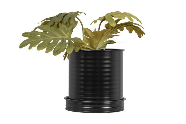 The Rita Rillo flowerpot has a modern industrial look, with embossed grooves on both the pot and the included saucer.