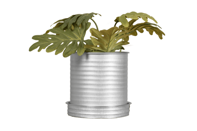 The Rita Rillo pot has an industrial look, with embossed grooves on both the pot and the included saucer.