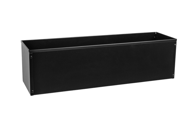 The balcony box is produced in 0.6 mm iron dipped in liquid zinc. The balcony box is painted black.