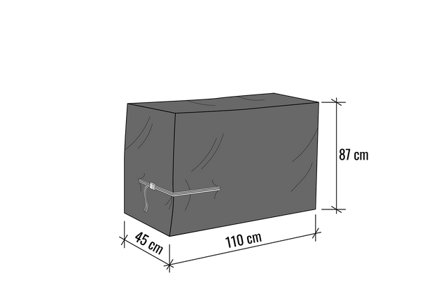 Solid cover that fits a bench. When you store your balcony furniture under a Solid furniture cover off season, it will extend the life of your outdoor furniture. The cover is made of the material: Aerocover®. Aerocover® has a breathable membrane that transports moisture away and at the same time prevents water from coming in.
