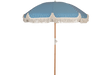 A colorful parasol with different stripes. The Stine parasol can be tilted and comes with very nice fringes along the edge. This is the perfect parasol for creating shade from the sun on the balcony. It also comes with a bag so you can take it with you to the beach or the park. This is a sturdy and durable parasol with a pole made of oiled beech wood and 5 mm Fiberglass bars that holds the fabric and make it extra strong and resistant to wind.